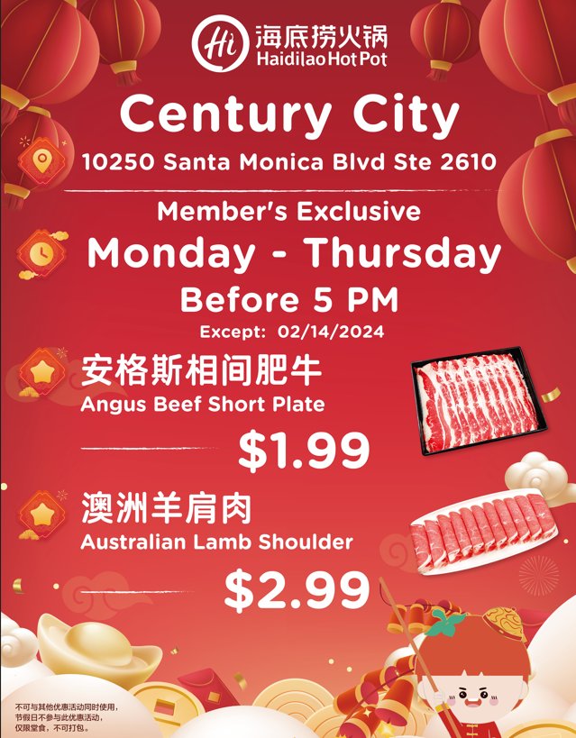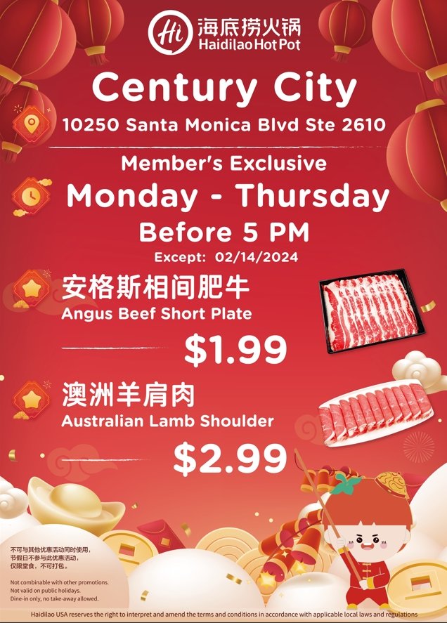 Haidilao Hotpot Century City offers a unique dining experience with a wide variety of fresh ingredients, including meats, seafood, and vegetables for their hot pot dishes. The restaurant prides itself on exceptional service, providing perks like snacks, aprons, and even free manicures. The soup bases, especially the spicy mala and tomato broth, are highly praised, and customers can customize their own dipping sauces. The handmade noodles add an extra flair to the dining experience. Despite being on the pricier side, customers find the quality of food and service worth it. The restaurant also offers unique features like robot food delivery and seasonal buffet options. With a lively atmosphere, Haidilao Hotpot Century City is a must-try for hot pot enthusiasts.